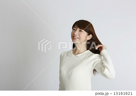 髪をかきあげる日本人女性 Ml Jpg 写真素材